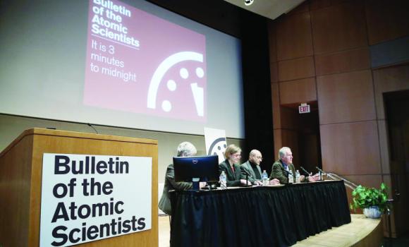 (MENAFN- Arab News) WASHINGTON: Climate change and the danger of nuclear war pose an ever-growing threat to civilization and are bringing the world closer to doomsday a group of prominent scientists and Nobel laureates said on Thursday.'It is now three minutes to midnight' said Kennette Benedict executive director of the Bulletin of the Atomic Scientists as the group moved its symbolic 'Doomsday Clock' two minutes forward.The Doomsday Clock was created in 1947. It has changed 18 times since then ranging from two minutes to midnight in 1953 to 17 minutes before midnight in 1991.The clock has been at five minutes to midnight since 2012 and the last time it was three minutes to midnight was in 1983 during the Cold War between the United States and the Soviet Union.'Today unchecked climate change and a nuclear arms race resulting from modernization of huge arsenals pose extraordinary and undeniable threats to the continued existence of humanity' Benedict said.'And world leaders have failed to act with the speed or on the scale required to protect citizens from potential catastrophe.'The scientists called on people to demand action from their leaders to curb fossil fuel pollution and to stop developing ever more modern nuclear weapons that are endangering the planet.'We are not saying it is too late to take action but the window for action is closing rapidly. The world needs to be awakened from its lethargy and start making changes' Benedict said.Such actions should cap greenhouse gas emissions at levels sufficient to keep average global temperature from rising more than 2 degrees Celsius above preindustrial levels the group said.