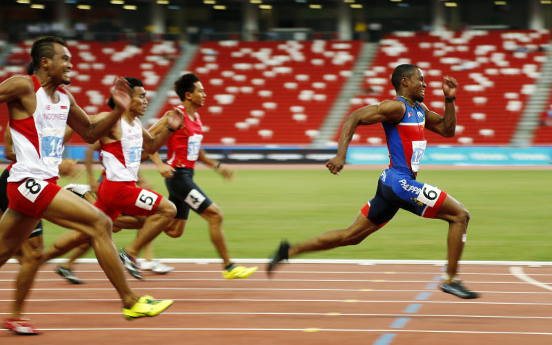 Cray who was born in the Philippines and raised in the United States has an Olympic qualifying time in the 400 hurdles but showed he's got plenty of explosive speed with a national 100 record of 10.25 seconds. Boby Yaspi edged Indonesia teammate Iswandi for silver in a photo finish after both clocked 10.45.