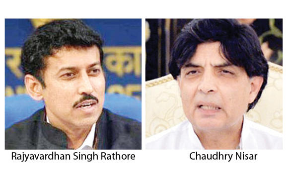 Nisar's statement was in response to Rajyavardhan Singh Rathore Indian minister of state for information who hours after New Delhi carried out an operation against militants in Myanmar had said his country would strike at a place and at a time of their choosing against all countries including Pakistan and groups harboring 'terror intent.'