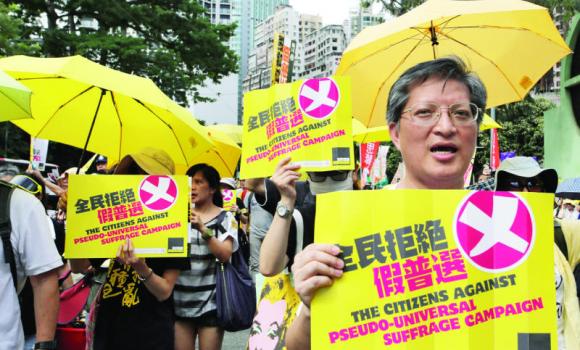 Hong Kong's pro-democracy protesters say that makes a mockery of China's pledge to eventually grant universal suffrage in the territory.