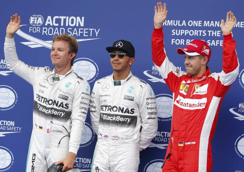 Hamilton took his pole with a best lap of 1min 8.455sec outpacing Rosberg by 0.2 seconds. Vettel was third fastest for Ferrari.