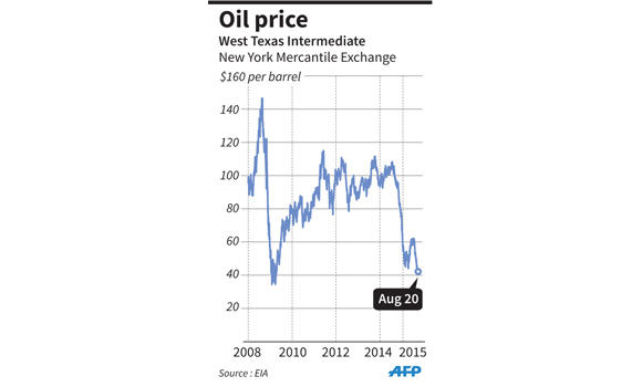 The US crude October contract hit an intraday low of $40.50 on Thursday. Brent crude futures the global oil benchmark were down 30 cents at $46.86 a barrel still some way off their 2015 low of $45.19 traded in January.