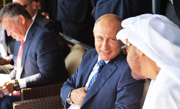 (MENAFN- Arab News) MOSCOW: Russian President Vladimir Putin hosted the Jordanian king and the crown prince of Abu Dhabi in Moscow Tuesday to discuss the Syrian crisis and take part in a showcase of Russia's military industry.