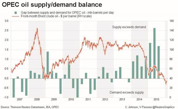 Oil prices remain capped near $30 a barrel after slumping to a 12-year low in late January. While prices recovered on speculation that the Organisation of Petroleum Exporting Countries might agree to production curbs with non-members, "the likelihood of coordinated cuts is very low," according to the IEA. No agreement to restrain supply emerged last week after Venezuelan Oil Minister Eulogio Del Pino toured oil capitals from Moscow to Riyadh.