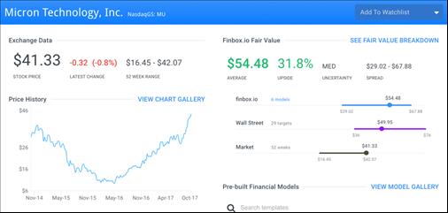 Micron Technology's shares last traded at $41.33 as of Thursday, October 19, approximately 98.2% of its 52 week high. The stock is up 81% year-to-date while finbox.io's six separate valuation analyses imply that there's still another 31.8% upside.