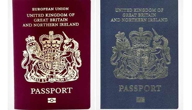 The country will phase out the current burgundy colour travel document -- used across the EU -- following Brexit, when it will no longer be required to conform to the bloc's rules.