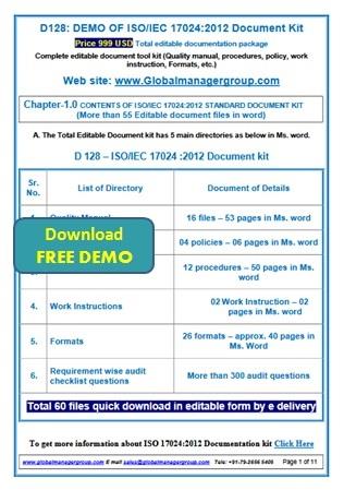 Company is also offering online ISO 17024:2012 documentation consultancy, which saves time and cost of certification process. In this consultancy project, experienced ISO Consultancy team collects required information and requirements from clients via email and other digital resources and prepare documents accordingly.The document kit is introduced to sell online at very competitive rate of just 999 USD. The complete sets of ISO 17024:2012 documents designed to minimize the time and cost involved in certification. For further details on documentation kit and access FREE DEMO to understand list of documents cover inside this toolkit, visit websites: http://www.documentationconsultancy.com/