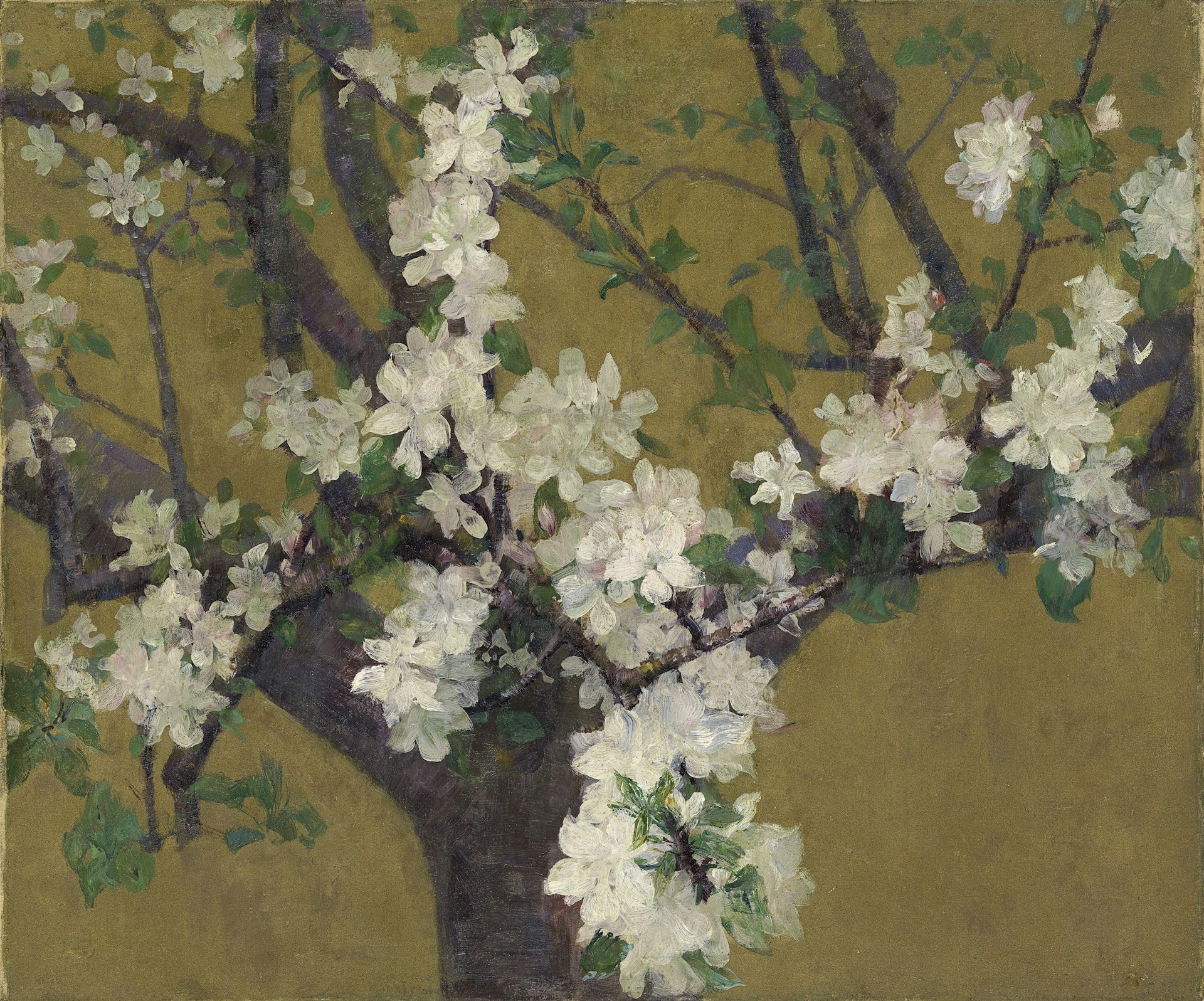 Russell did not immediately move towards Impressionism. At first, under the influence of Van Gogh, he started to compose works influenced by the asymmetry of Japanese woodcuts. Both he and Van Gogh admired almond blossoms, evoking in paint their transient beauty. In 1887, just after the death of his first son, Jean Paolo, Russell painted a series of blossom paintings and it is not too hard to see these as a tribute to that brief life.