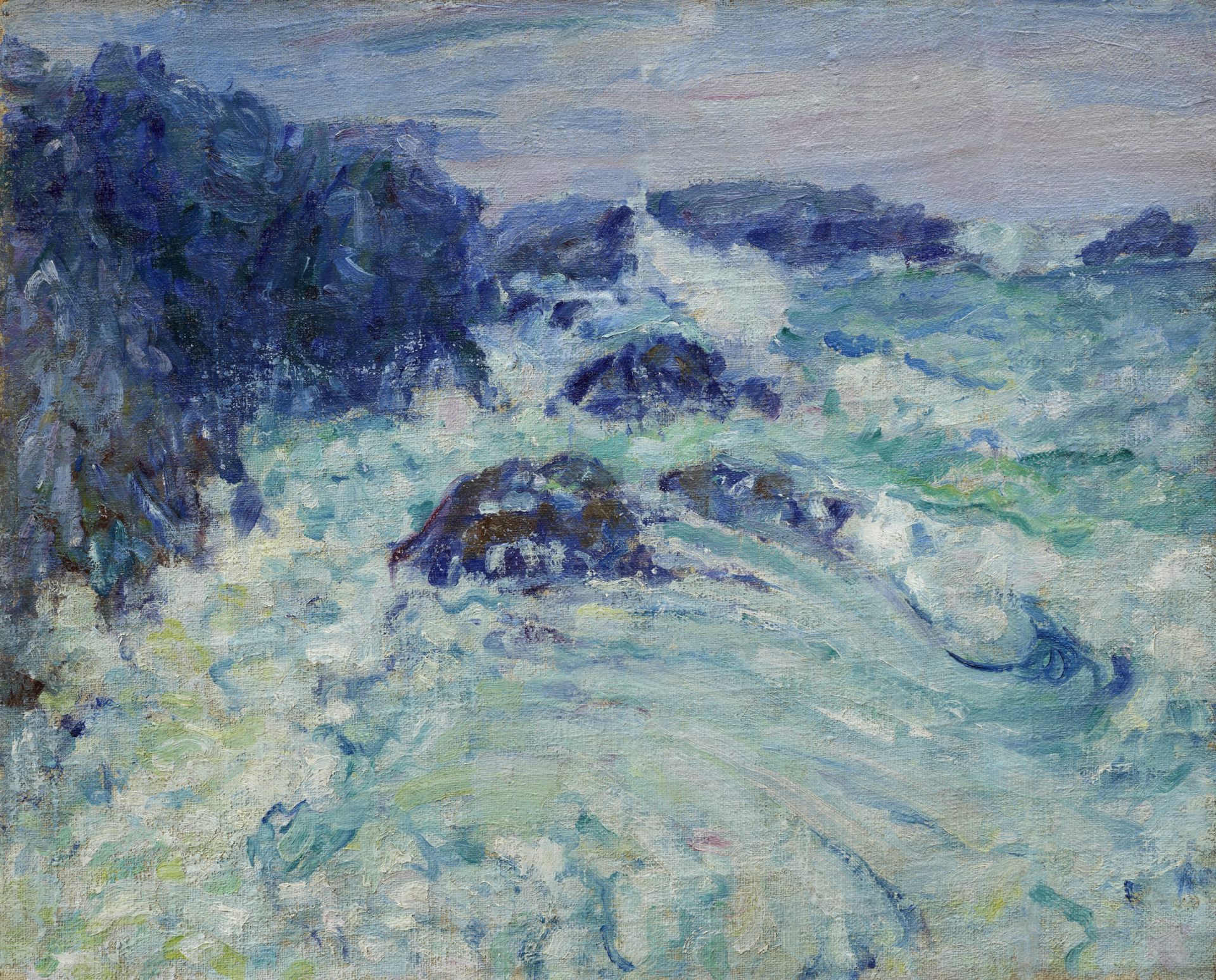 One of the great joys of this exhibition is the large group of works painted at Belle-Île, where the Russells made their home. There are paintings of domesticity, with children, as well as some of the local people at work, but best of all is the wall displaying a series of paintings of the great crashing waves, where the artist's rapid strokes define the foam and swirl of water.