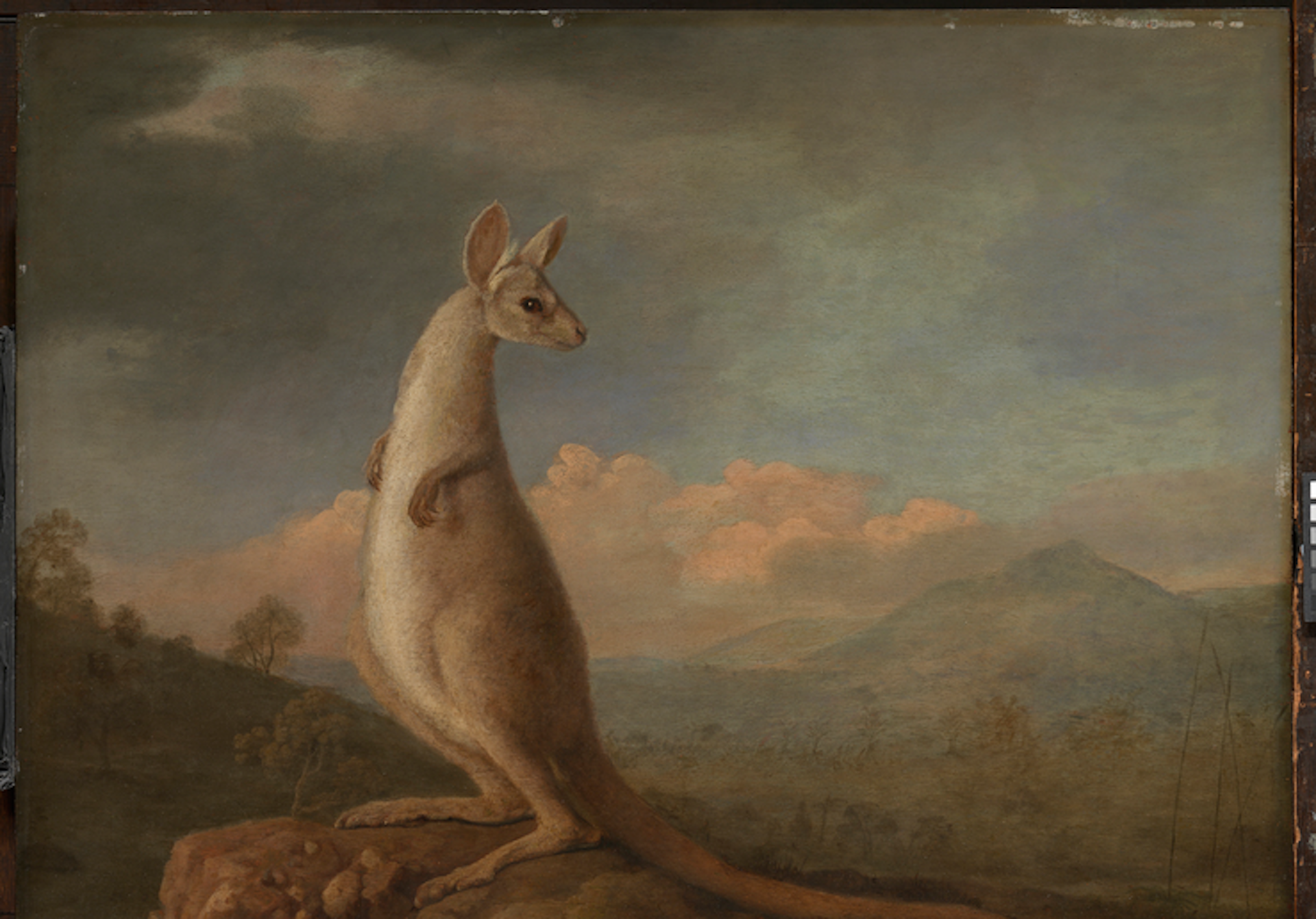 Bits and pieces of dead kangaroos were shipped back to England, where Banks presented them to George Stubbs, an artist famous for his anatomical accuracy – and who had made his name as a painter of thoroughbred horses and hunting scenes. Stubbs worked with a stuffed or inflated pelt and drew on Parkinson's sketches to produce the first painting of this newly-identified species, Portrait of the Kongouro from New Holland (1770).