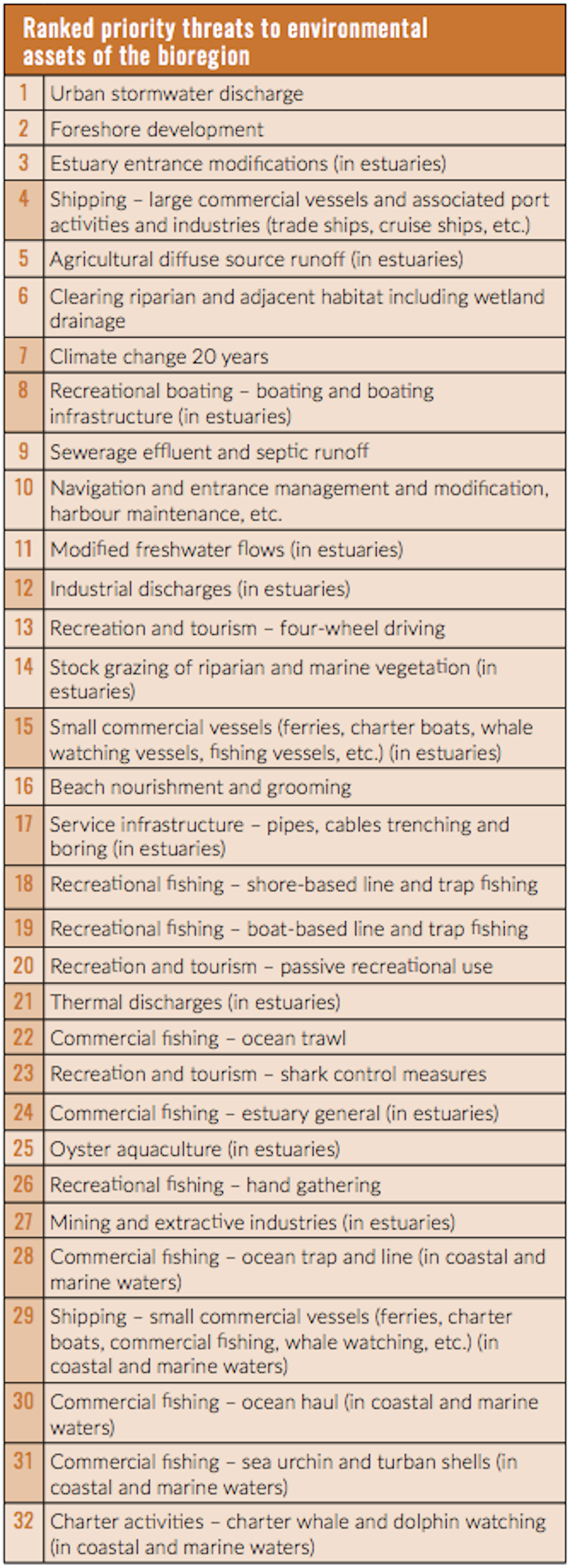 New zones and ranked threatsThe original marine park proposal was far from ideal. A good marine park should have a string of closely connected sanctuary zones, but there was a large gap from southern Sydney to Wollongong where no sanctuary zones were proposed.