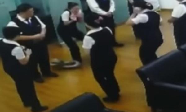 The drama happened at 8.14am last Friday when a bank manager at the Industrial and Commercial Bank of China was holding a morning briefing with eight employees.