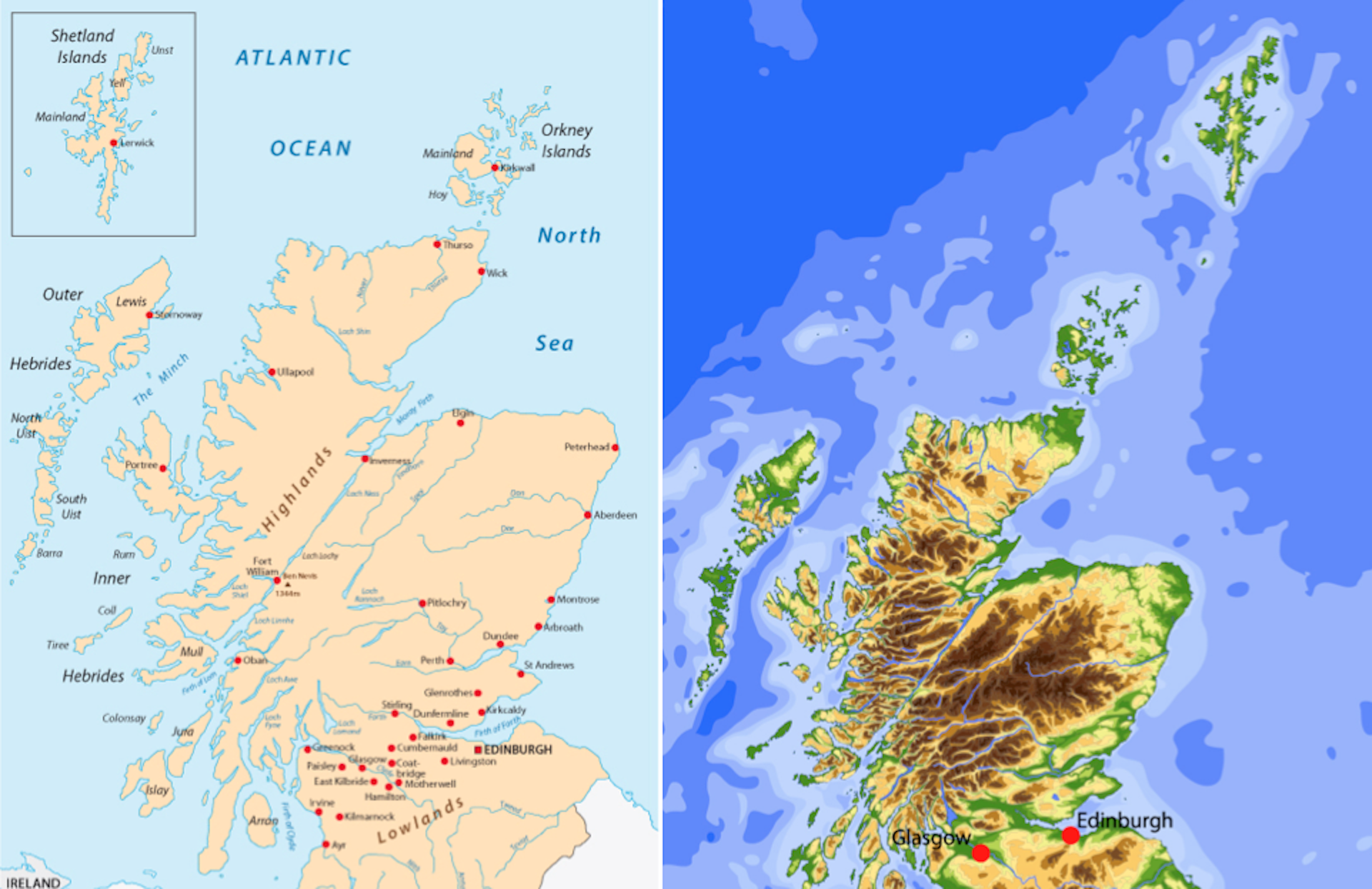 And the Shetlands? Some maps of Scotland should include the islands in their true geographic location in order to highlight their remoteness and logistical issues, as Scott says. However, not all maps need to: sometimes this is not relevant to the map, and it is more important to give more prominence to the central belt of Edinburgh and Glasgow where many more people live.