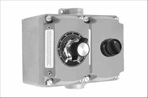 The EPCS-1X3PS.HOA-24V-PTM.5K is a variable frequency device remote control station that facilitates the control of variable frequency devices in flammable environments. This explosion proof remote has a maintained selector switch with hand, off and auto settings. A rotary dial with 0-10V input is available for speed control via 5K Ohm potentiometer. Connection is required for the start, stop and speed control signals of the VFD.