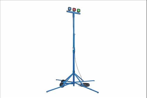 The WAL-QP-3XWL-RGB-SW-50-1224 from Larson Electronics is a portable quadpod light tower that can be collapsed to 7 feet or raised to 12 feet and is comprised of three colored LED light heads: one red, one blue and one green, mounted on a four-leg steel quadpod base. The LED light heads provide 6,750 lumens total, 2,250 lumens each. Each light is equipped with five 5-watt LEDs and combines these with a high output parabolic reflector to produce a narrow 5° degree spread spot beam from each lamp. This provides a high intensity center beam visible during daytime and nighttime operations.
