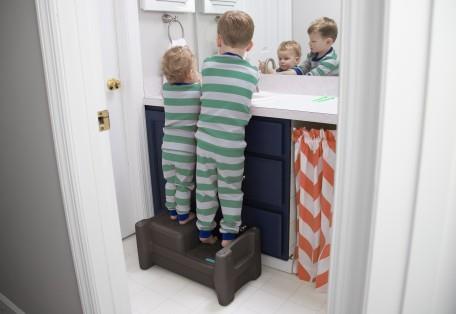 TheSibling Step Stoolis a lightweight, extra wide, two-sided step stool with multiple heights that fits two children side by side or flips over to work for two children similar in height. It's the perfect buddy to help kids step up to the sink or counter level to brush teeth, wash hands or help mom and dad.