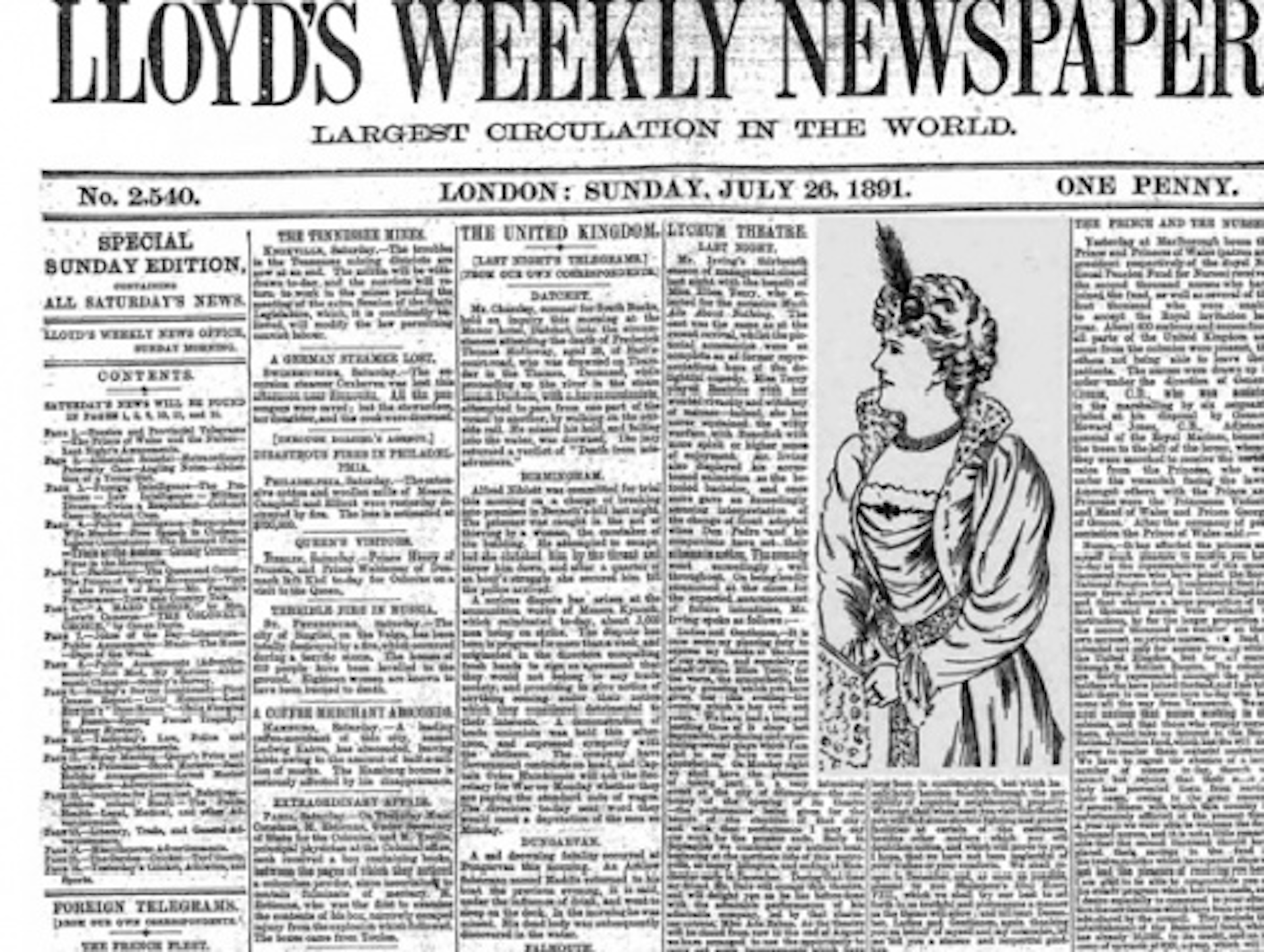 Lloyd's Weekly Newspaperwas one of a series of mass circulation Sunday papers, including The News of the World (issued in 1843), which created a newspaper reading habit in increasingly literate workers.