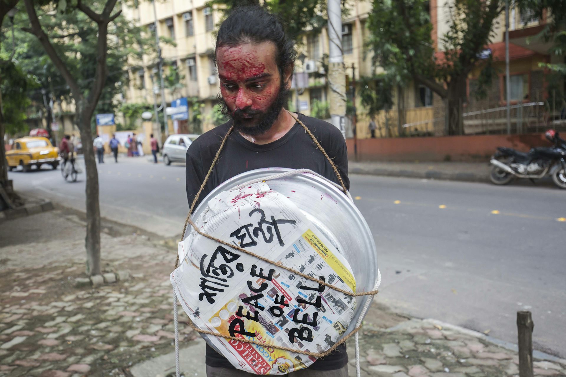 Students and activists protest the violence against Rohingya people near Myanmar embassy in Calcutta, September 4 2017.