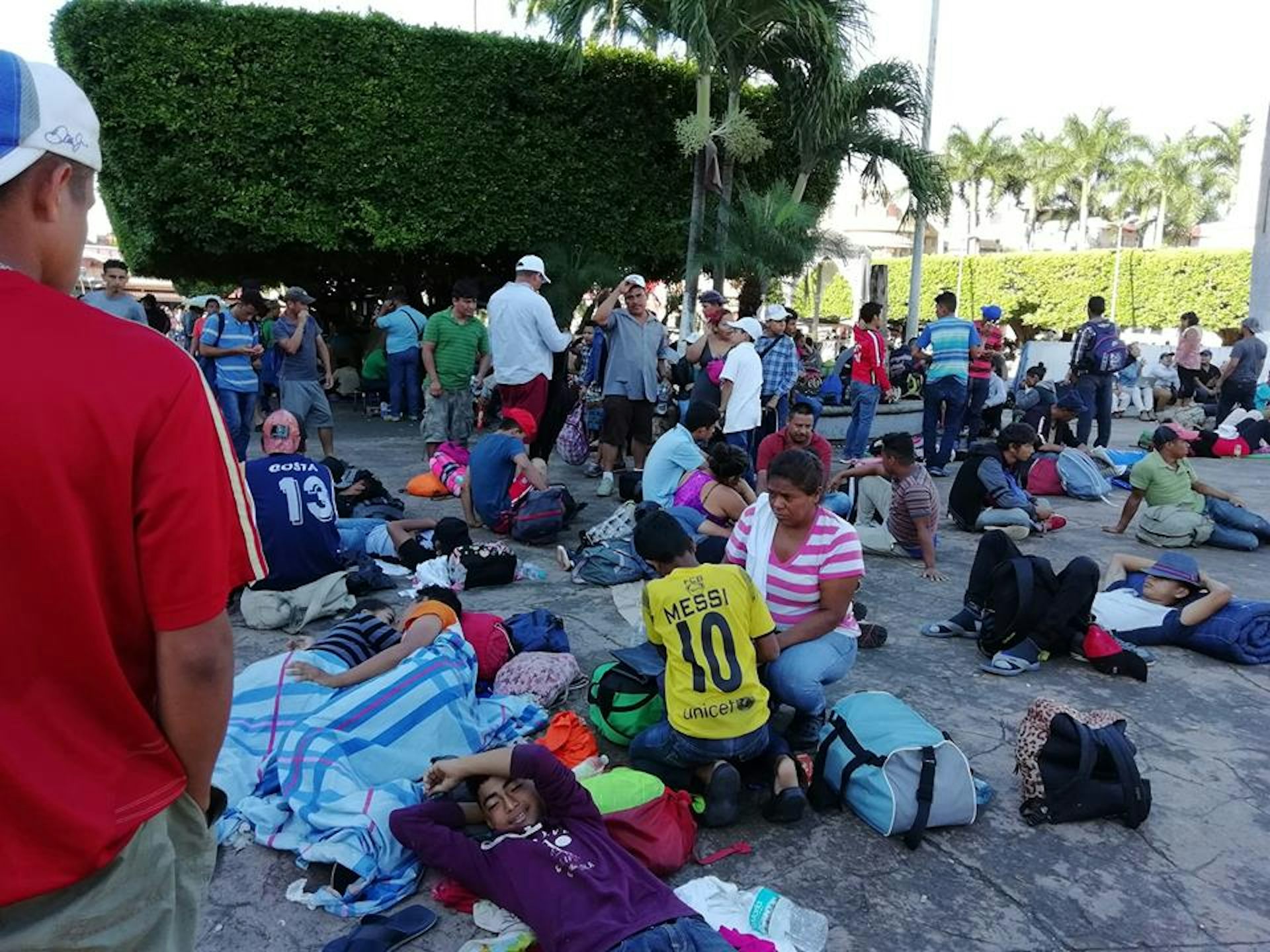 Central Americans camped out in Plaza Hidalgo in the city of Tapachula, Chiapas.