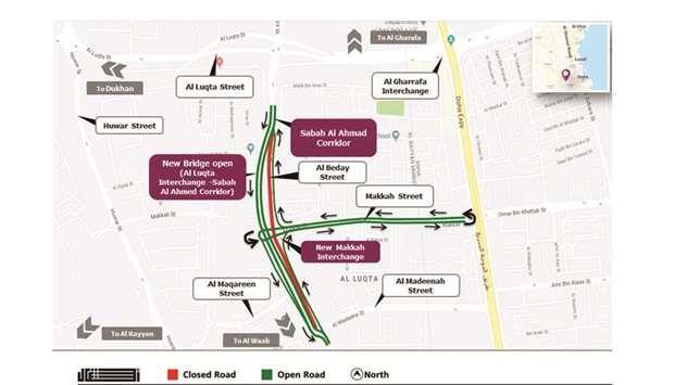 From Al Gharrafa towards Al Rayyan and Al Waab: During the first phase of diversion, vehicles coming from Al Gharrafa towards Al Rayyan will be diverted from Sabah Al Ahmad Corridor to the bridge. The signalised junction will remain open to those coming from Makkah Street in the direction of Al Rayyan.