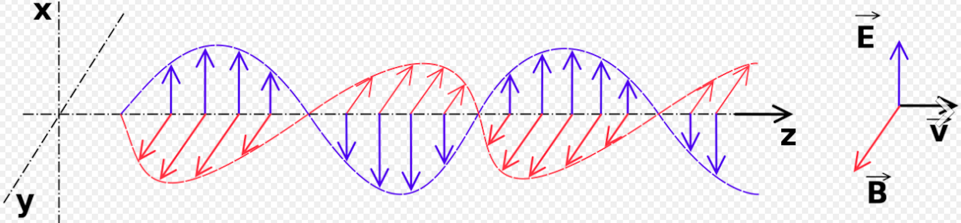 Light wave with electric and magnetic fields (blue and red).