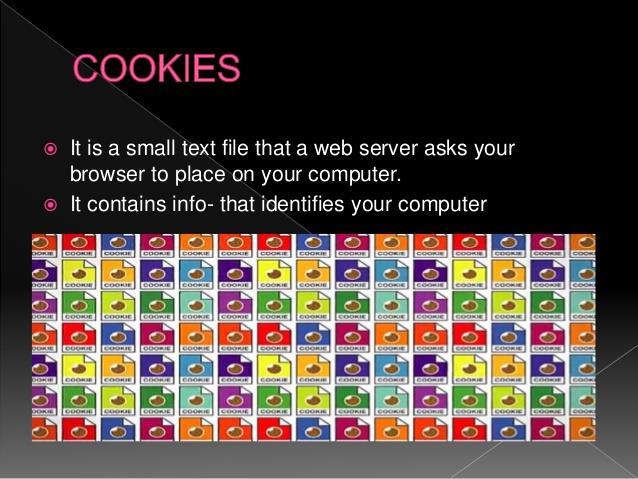 Cookies are defined as a small piece of text that is used by aweb server . They can be stored inside the user's hard drive. Their main and most important function is that they allow a website to save information on a user's machine to recover it later. The database that is stored within cookies is saved by value, pairs, and name.