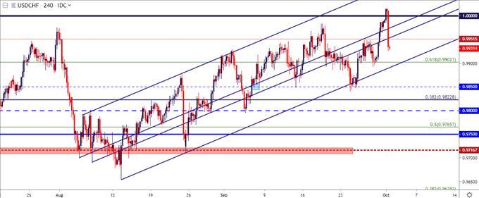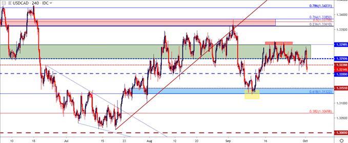 p-While the US Dollar was surging into the end of Q3,USD/CADcontinued to respect resistance, highlighting the fact that theCanadian Dollarwas fairly strong, as well.USD/CAD Four-Hour Price Chart