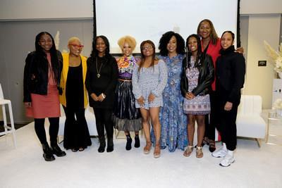 Faith Fennidy, Tyrelle Davis, Esi Eggleston Bracey, Deanna Cook, Shonda Rhimes, Mya Cook, Senator Holly Mitchell, and Janaya "Future" Khan attend a town hall discussion centered on the impact of hair discrimination hosted by The Dove Self-Esteem Project. (Photo by Sarah Morris/Getty Images for Dove)
