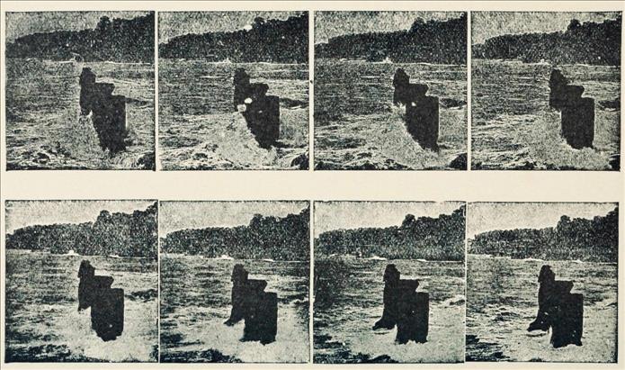 Each individual frame shows a static sea. Yet across the series, waves crash. Many 20th-century philosophers conceived of time in this way.