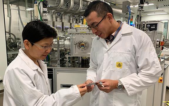 Baohua Jia and Han Lin with the graphene cooling film. CTAM Global OpenLab, Author provided