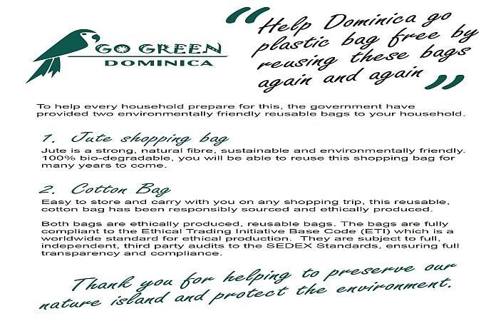 Go Green Dominica - The Dominican Government will provide all households on the island with jute and cotton bags to use as a sustainable alternative to plastic bags.