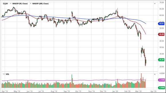 The gap above will obviously be an interesting spot for traders, and it could be the target on some type of major relief rally. What's interesting is that the daily candlestick's form a bullish harami, something that will attract a lot of attention. The $30 level above will be significant resistance, followed by the $34 level, and then eventually the $42 level. A bounce from here should see plenty of exhaustion above that people can take advantage of for a bigger move to the downside. After all, there are major issues out there that will continue to influence the marketplace, not the least of which demand is a part of. After all, demand started to drop before the virus started to reach the West.