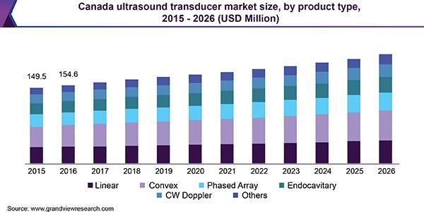 The global ultrasound transducer market size is anticipated to reach USD 4.2 billion by 2026, according to a new report by Grand View Research, Inc. It is expected to expand at a CAGR of 3.6% during the forecast period. Increasing number of product launches and growing focus of the major players on innovations for safe and accurate diagnosis are the factors driving the growth.