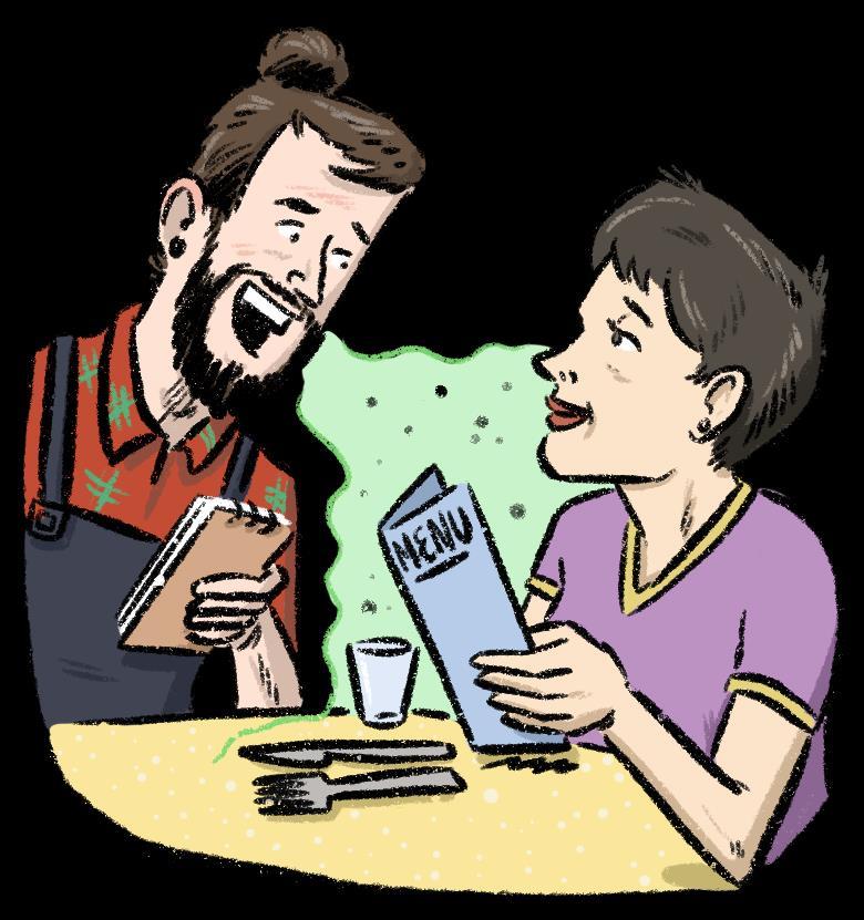 When the waiter comes to take your order, they will likely enter your breathing space. This is usually considered to be a circular zone of about 1.5 metres around your body.