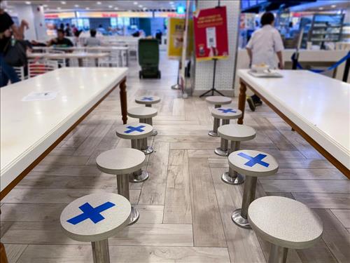 First, tables need to be spaced at reasonable distances. This allows patrons to be outside others' 1.5-metre breathing zones and also takes into account the potential effect of air conditioning.