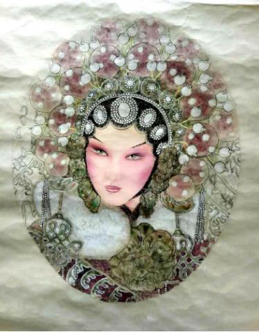 She can paint flowers and birds with fine brushwork, and is good at freehand brushwork. Whether it is peony, golden fish or grape, it is a combination of technique, reason and interesting purpose, and it is versatile and talented. A sea of cherry blossoms, which is full of elegance, agitation and air, and sings and plays with Peking Opera, is not to copy the object mechanically, but to excavate the spiritual temperament of meticulous brushwork through the creative mechanism of ink and color, taking artistic conception as aestheticism and charm as edification, which is like a song, attracting people's emotions and making people feel emotional. Look at this flower sea, intoxicated! This is the appeal of her artistic means. Meticulous figure painting, with superb line expressive force and vivid and clean color laying skills, portrays the spirits of the characters on paper, faces them in front of the eyes, and is vivid and true!