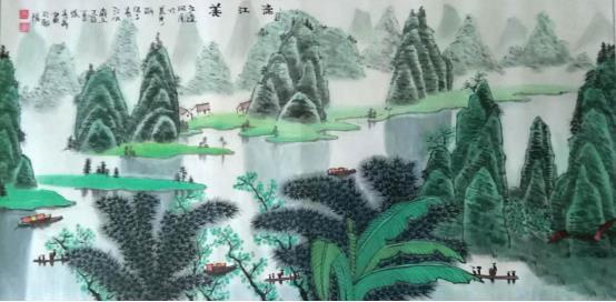 Exquisite painting techniques, wonderful, colorful flow and vivid style There are also amazing works, such as the big green landscape, the brush painting with changeable nature and spirit, the axe splitting painting with mountains and ridges, the broken backgrounds being scattered at random, the raindrops rolling clouds, and the mountains being green. In the rendering, which color does not hinder ink and ink does not hinder color, the landscape painting shows the charm of Lingnan and the divine wind of the East China Sea. These beautiful landscapes attract people to lie down and become a cool and refreshing state that can move people's hearts. This also confirms the initial intention of Ms. Zhang Chunhua's painting as a mind-cultivating from another aspect. Remain true to our original aspiration, and you will be perfect!