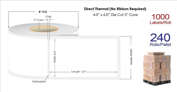 'Our thermal labels are 100 percent compatible with all of the leading industrial thermal label printers on the market including Zebra, SATO, Printronix, Honeywell, NEC, Datamax, Toshiba, and more. We have several label sizes including 4'x6', 4'x12', 4'x2', 3'x5', 3'x2', and more, as well as various colors and diameters,' Khalifa said. 'Most have rounded corners, are wound OUT, and have perforations, with a few exceptions. Depending on the label size selected, each pallet contains anywhere from 120,000 to 720,000 labels.'