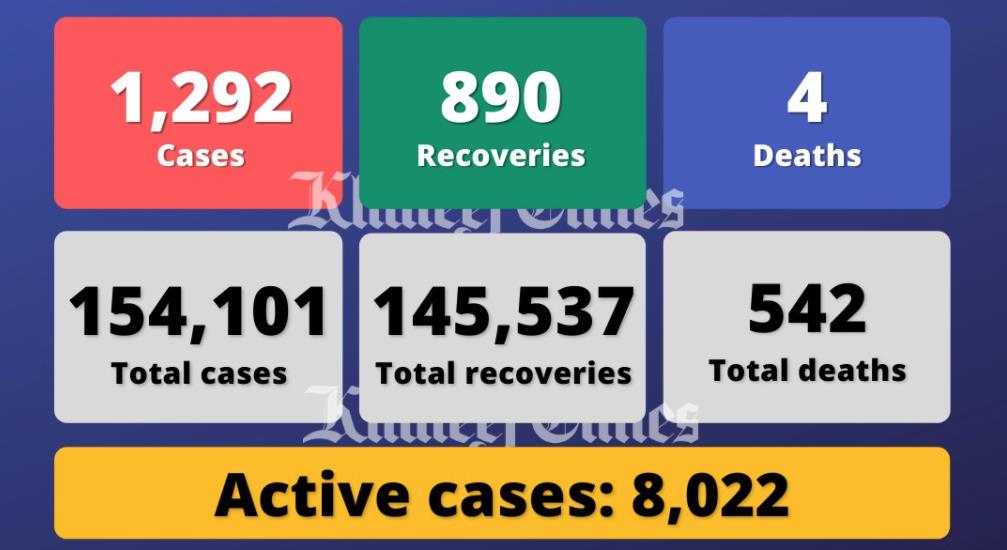 (MENAFN- Khaleej Times) The UAE Ministry of Health and Prevention on Wednesday reported cases of the 1,292 Covid-19 coronavirus, along with 890 recoveries. Four deaths were also reported.