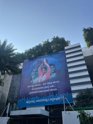 A festive mood prevailed at Lotus Pond amid the beating of drums and bursting of crackers. A huge picture of Sharmila with her father and hailing her leadership was installed at the residence.