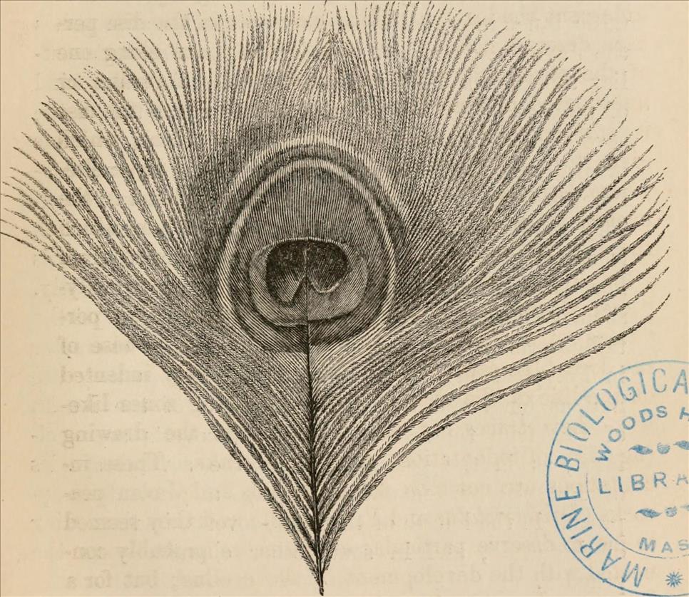 An illustration of a peacock feather as published in The Descent of Man. Wikimedia Commons
