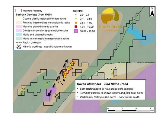 Figure 2: Queen Alexandra-Bird Island Trend, Manitou Gold Project, NW Ontario, Canada