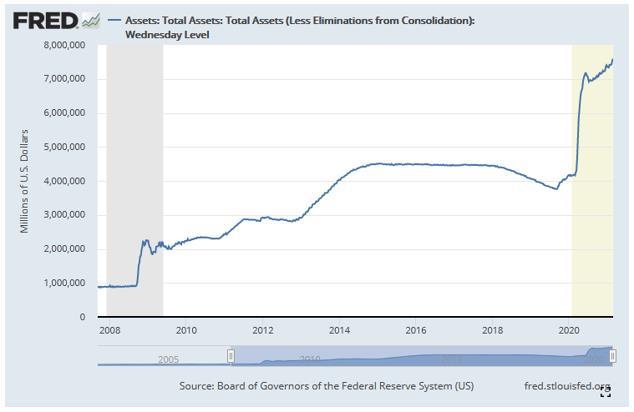 One big standout, for me, from this chart is how short lived and relatively shallow any asset reductions were. The most obvious takeaway, naturally, is the sheer amount of growth in assets. Over the 12 short years from 2008 to 2020, assets have blasted from $1 trillion to $7 trillion.