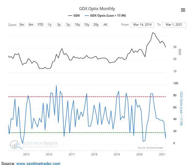 From price and sentiment perspectives, gold stocks also look like they're near their nadir.