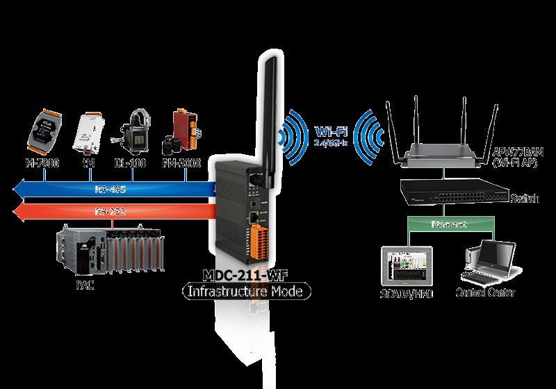 MDC-211-WF Modbus data concentrator is perfect for working with Supervisory Control and Data Acquisition (SCADA) systems. With a few simple settings, the data concentrator makes it easy to link distributed Modbus RTU devices with the Ethernet control network, a simple solution that users can employ to establish a remote monitoring control system quickly.
