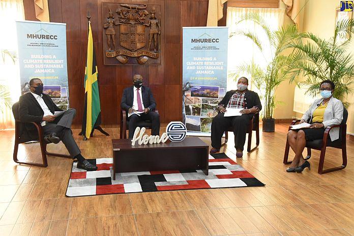 (From Left to Right) General Manager, Jamaica Mortgage Bank, Courtney Wynter; Minister of Housing, Urban Renewal, Environment and Climate Change, Pearnel Charles Jr; Senior Director in the Housing Policy Research and Monitoring Branch of the Housing Ministry, Paula Parkes; and the Ministry's Chief Technical Director, Doreen Prendergast.[Photo: Michael Sloley]
