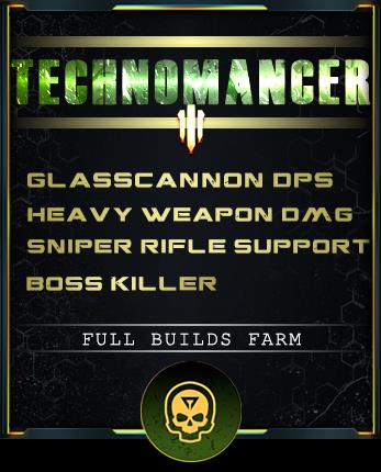 Technomancer is the long range damage dealer that drops bosses and dangerous enemies quickly. The peak late game build is the pestilence Technomancer focusing on glasscannon damage and boss elimination. The damage for this build is centered around using long range armaments and skills to boost their damage. Snipe Master skill which increases damage by 40% is a no brainer but this build also benefits from Exposing Toxin which applies toxin to all vulnerable enemies and Two Sides of the Power which increases the damage you receive by 15% but also the damage you deal by 20%. This will turn you into a real glasscannon, so be sure to keep your distance or hide behind a reliable tank. Other skills for the build include Blighted Rounds which inflict the toxic status on your enemies and deals 50% splash damage to nearby targets, Cold Snap will freeze all enemies around you and allow for quick escape ambushes and finally Blighted Turret which not only deals but also soaks up damage received and takes enemy focus off you.