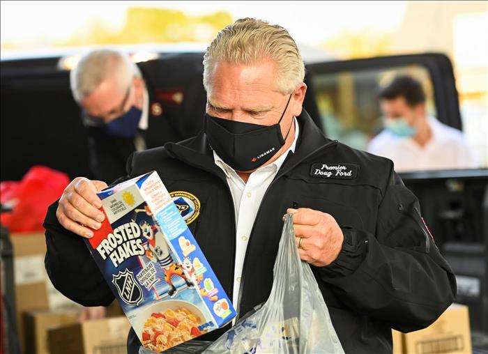 Ontario Premier Doug Ford delivers food at the Salvation Army food bank in October 2020. THE CANADIAN PRESS/Nathan Denette