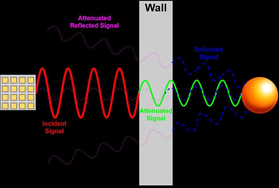 How radar can go through wallsLike cellphones, radars use electromagnetic waves. When a wave hits solid walls like drywall or wood walls, a fraction of it is reflected off the surface. But the rest travels through the wall, especially at relatively low radio frequencies. The transmitted wave can be totally reflected back if it hits a metal object or even a human, because the human body's high water content makes it highly reflective.