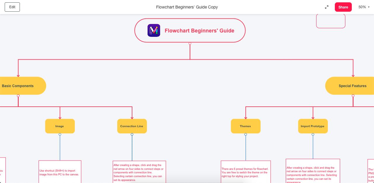 Miro is an online whiteboard utility that comes with ready-to-use mapping and diagramming tools that help you brainstorm or create stunning user flows, flow charts, customer journey maps, and many useful process flow diagrams to enhance your UX design. It is also easy to use and you can assign key stakeholders to various processes in your user flow map. In addition, it shows you who added what element or comment, which makes it easy to understand. The tool is highly collaborative and allows users to easily share their work with others to get quick feedback and comments in real-time or offline.